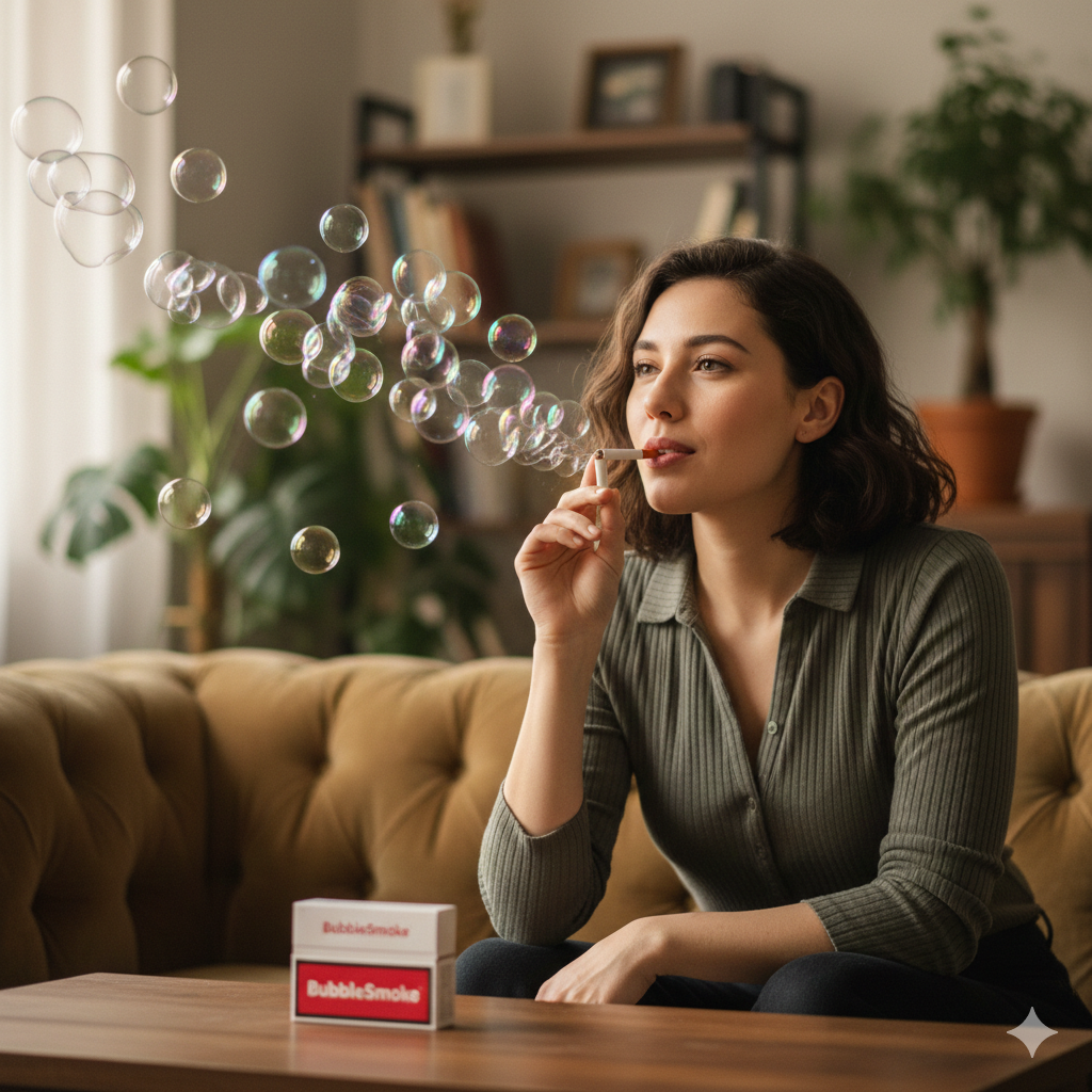 „Puste Seifenblasen und mach alle neidisch – die lustigste ‚Zigarette‘, die man je gesehen hat. Einmal pusten und du bist sofort der Mittelpunkt, sorgst für Lacher und neugierige Blicke.“